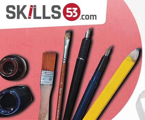 Getting started with the tools, basic up and down strokes, practice drill patterns and a full beginner alphabet upper and lower case.